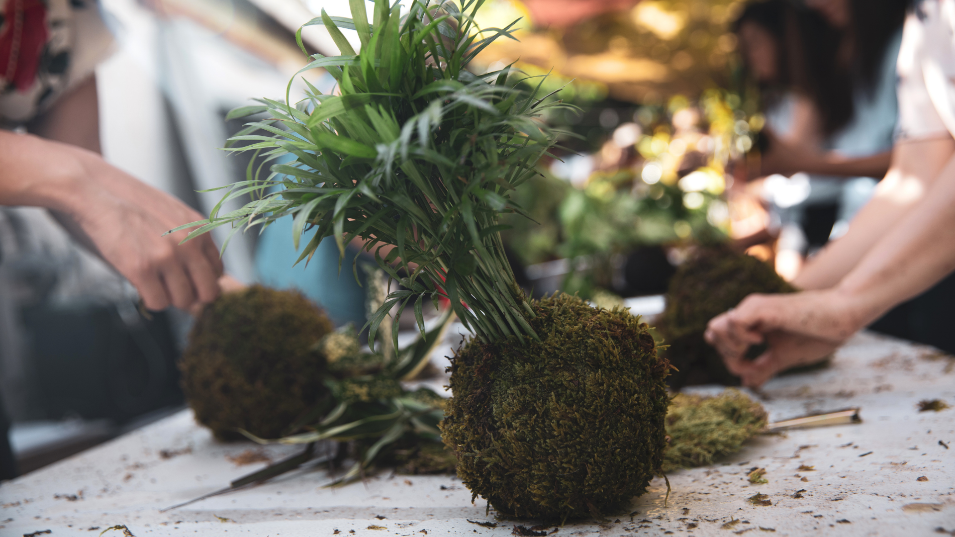 Throughout this interactive team-building workshop, each participant will learn about the traditional Japanese art form of Kokedama. Kokedama is a style of Japanese bonsai in which a plant's root system is wrapped in moss and bound with string, transforming it into a living sculpture.